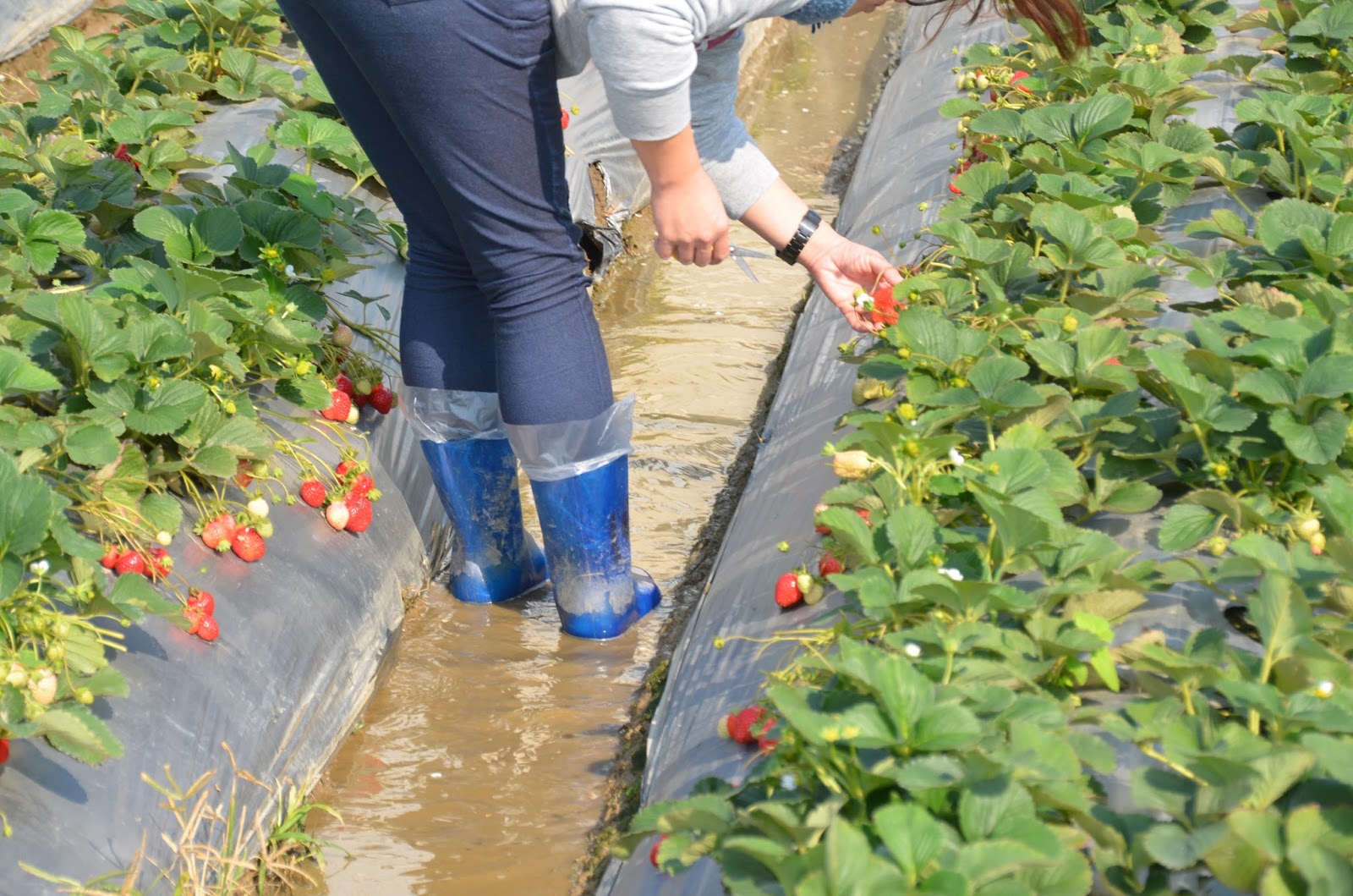 昨夜下雨,積水,不過看來是沒有澆熄大家的採草莓火焰