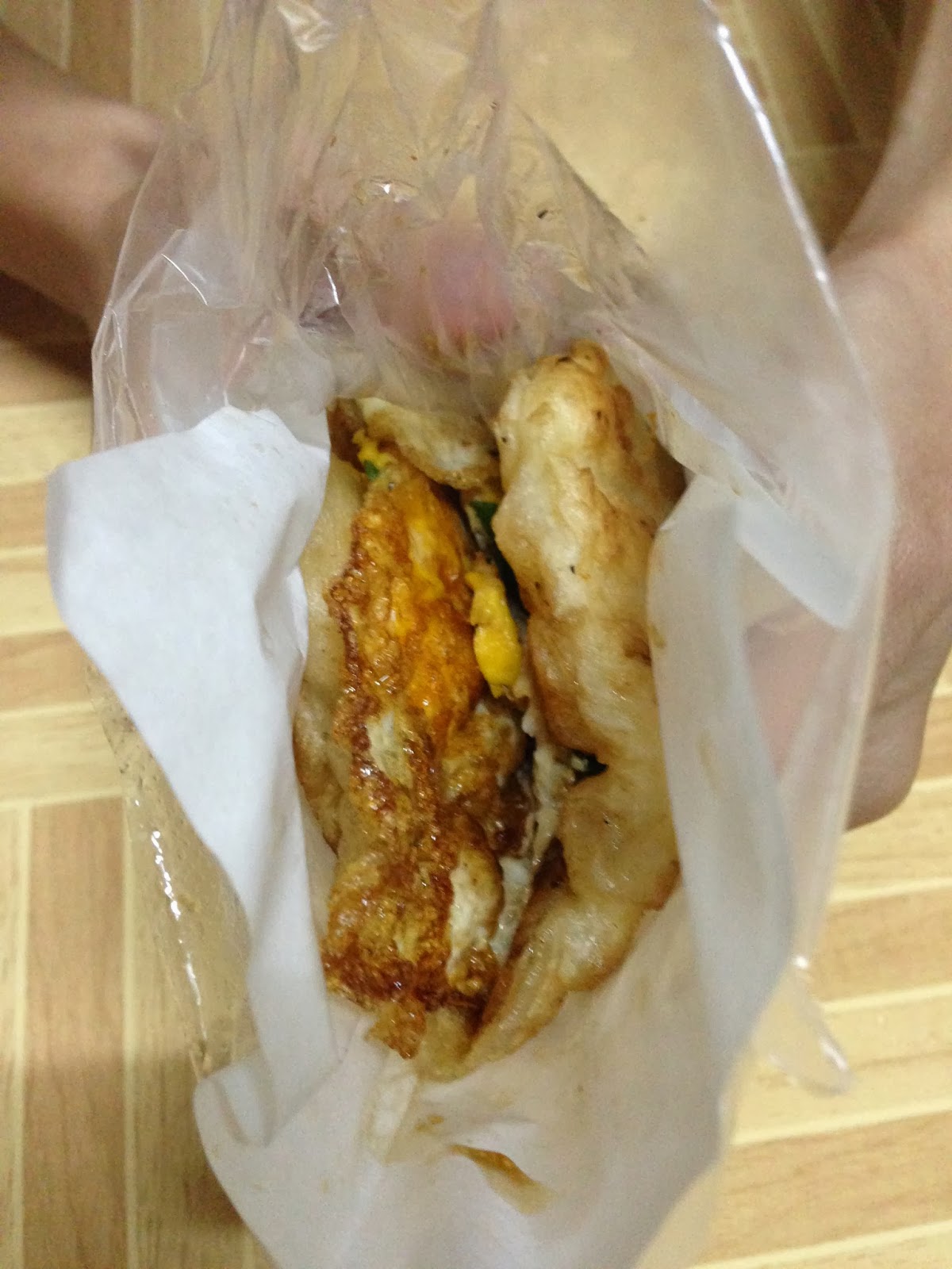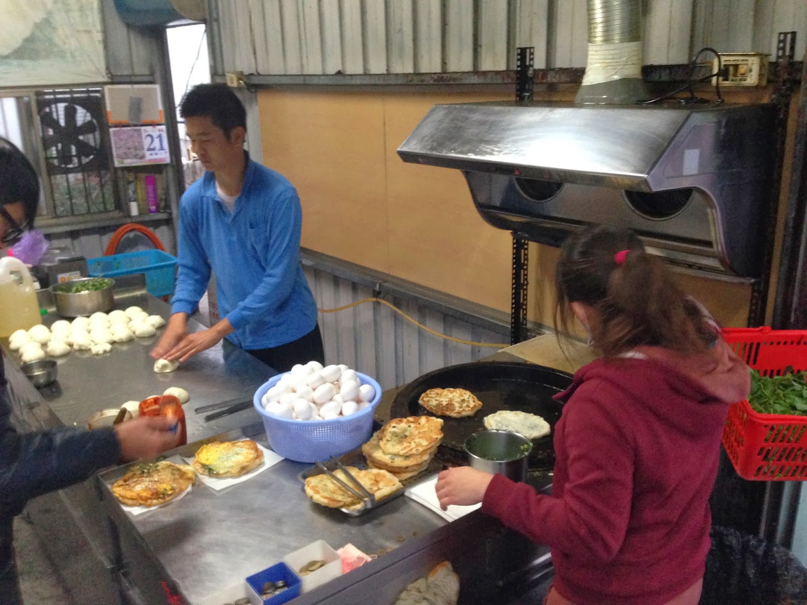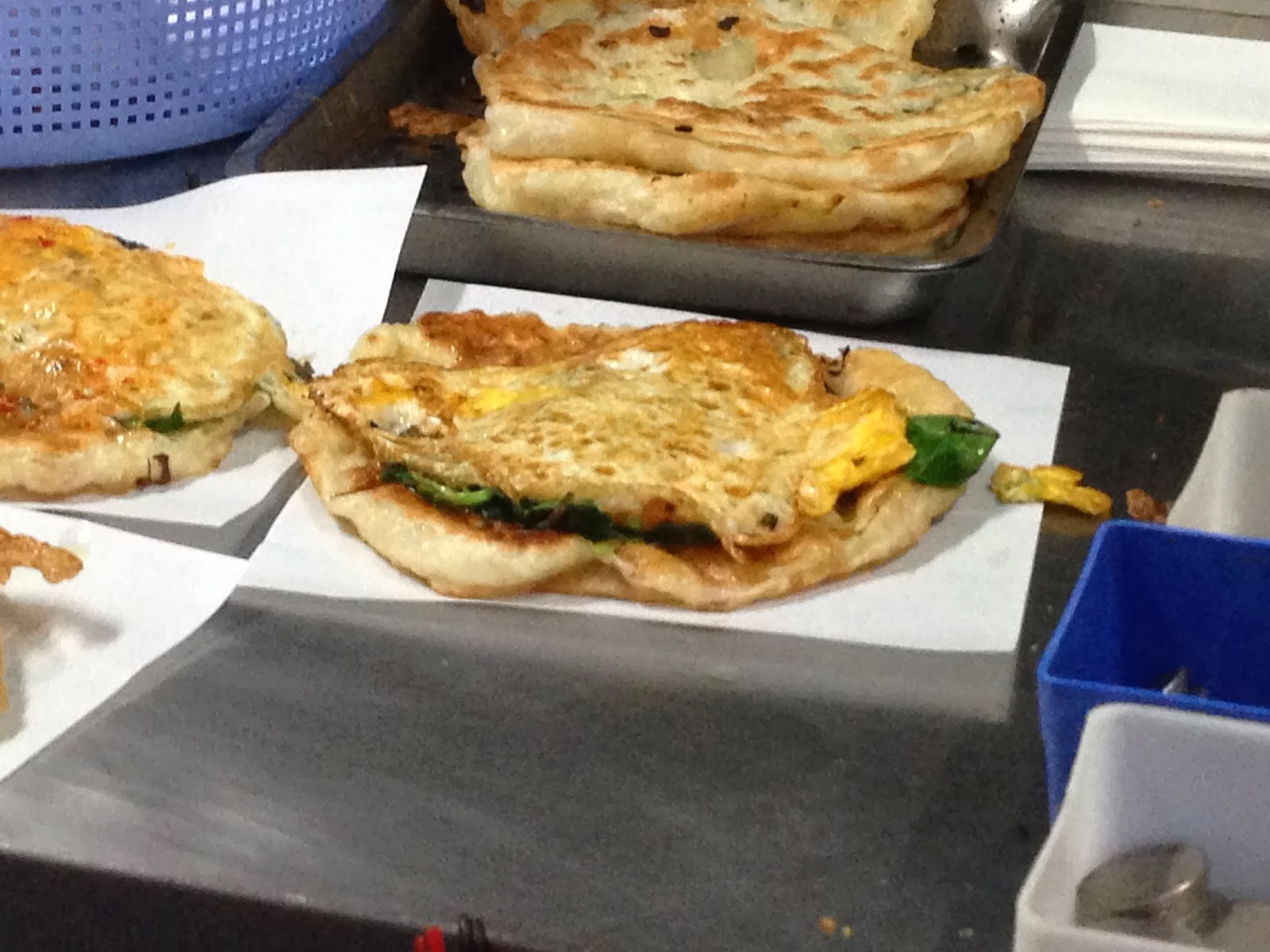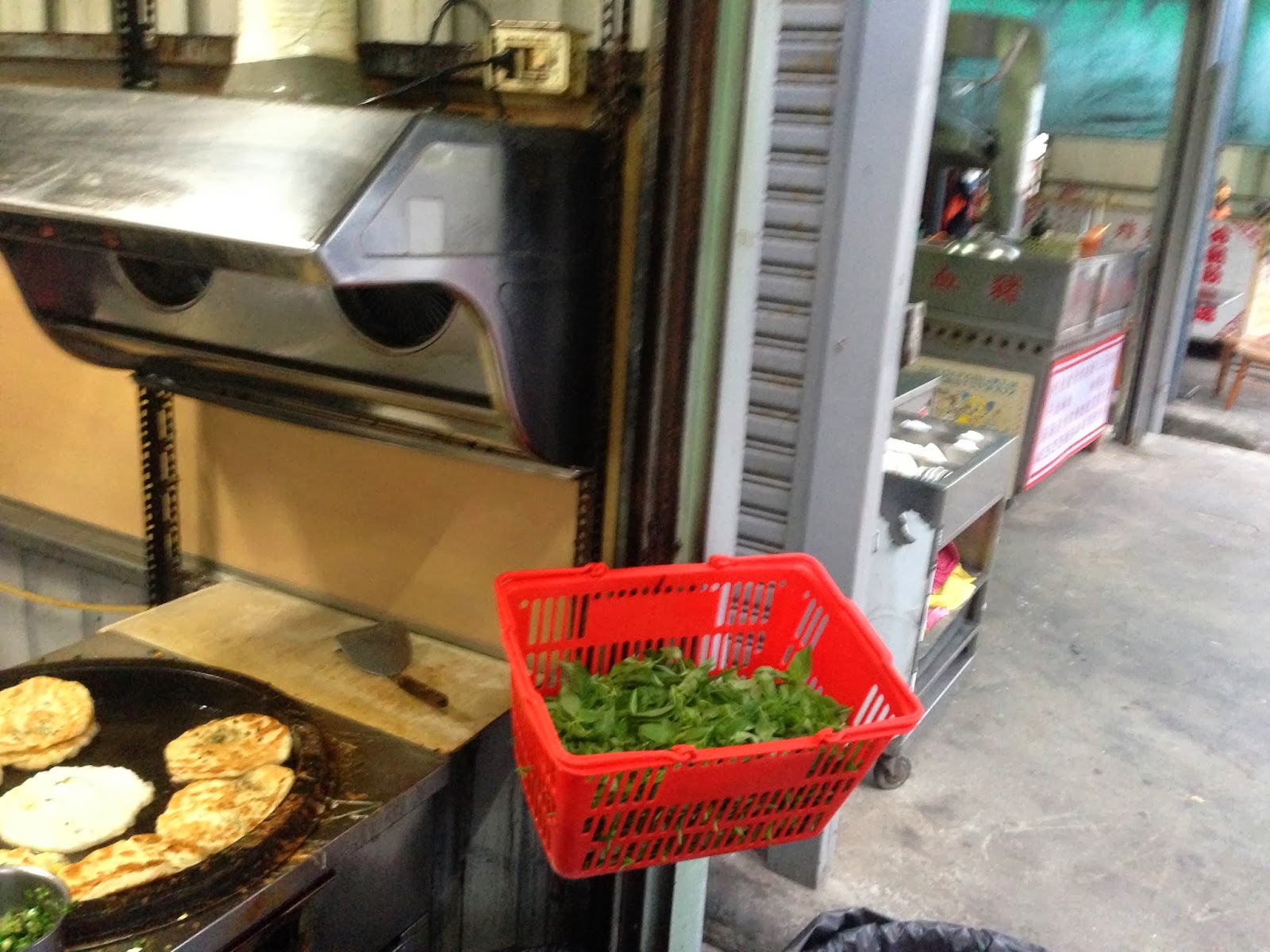 沒錯,重點來了,請看個仔細,左邊這個桶子中的蔥末加上鍋子中間正在爆香的九層塔就是美味的關鍵,你有看過蔥油餅的蔥不但加在餅皮中,還在額外加那麼一大坨的嘛!!!!是想逼死誰啊!還有那間的酥香的蛋蛋!my god!!!!最後在加了爆香的九層塔.......這種味覺的衝擊,誰有自信能夠泰山崩於前還不動聲色的呢???