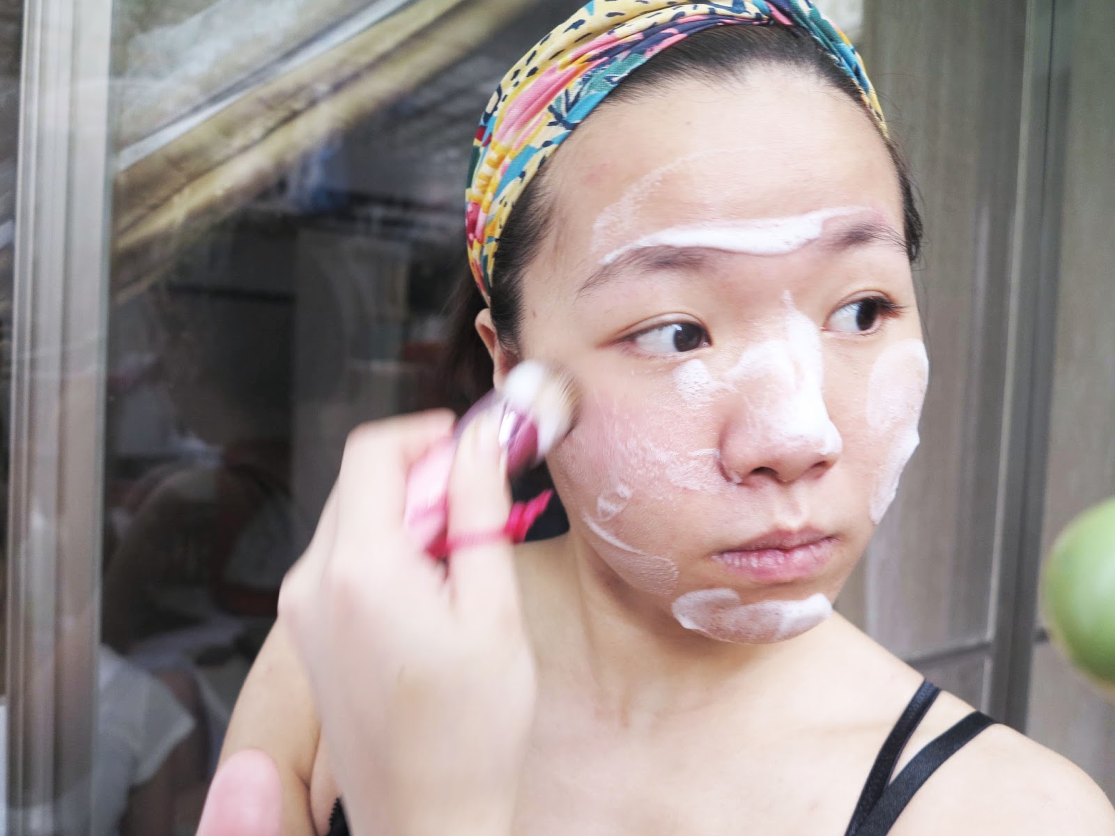 使用前的照片~特地還把皮膚圈出來放大給你們瞧瞧(好想掩面阿!!!!!!) 先把洗面入搓出泡泡吧!但懶人安妮就用慕斯式的洗臉了喔!