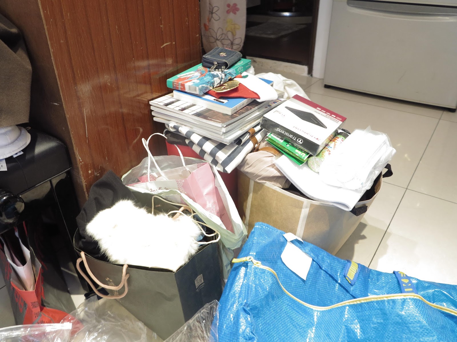 然後再把這些多出來的東西分門別類放進不同的袋子裡(我弄出了衣物兩大袋,配件一袋,書與小物包包一袋)
