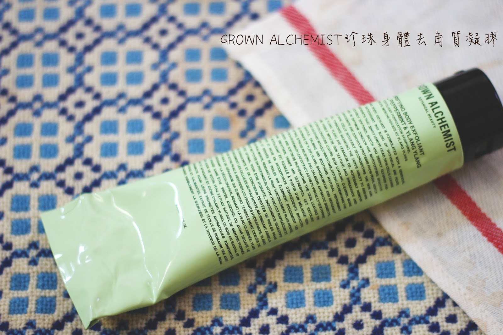身體去角質目前是用GROWN ALCHEMIST珍珠身體去角質凝膠,味道是依蘭花香還有薄荷以及迷迭,但是我覺得這其實比較適合在夏天使用,因為薄荷會帶來清涼感!但是因為我很喜歡依蘭花香所以還蠻愛使用他,雖然是去角質,但是身體變得光滑卻不會太乾燥!