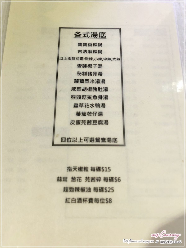 打邊爐最重要湯底,坐底後先叫湯底,除了有常見的湯底,更有數款特式湯底提供,不用額外收費,四位以上可選鴛鴦鍋。