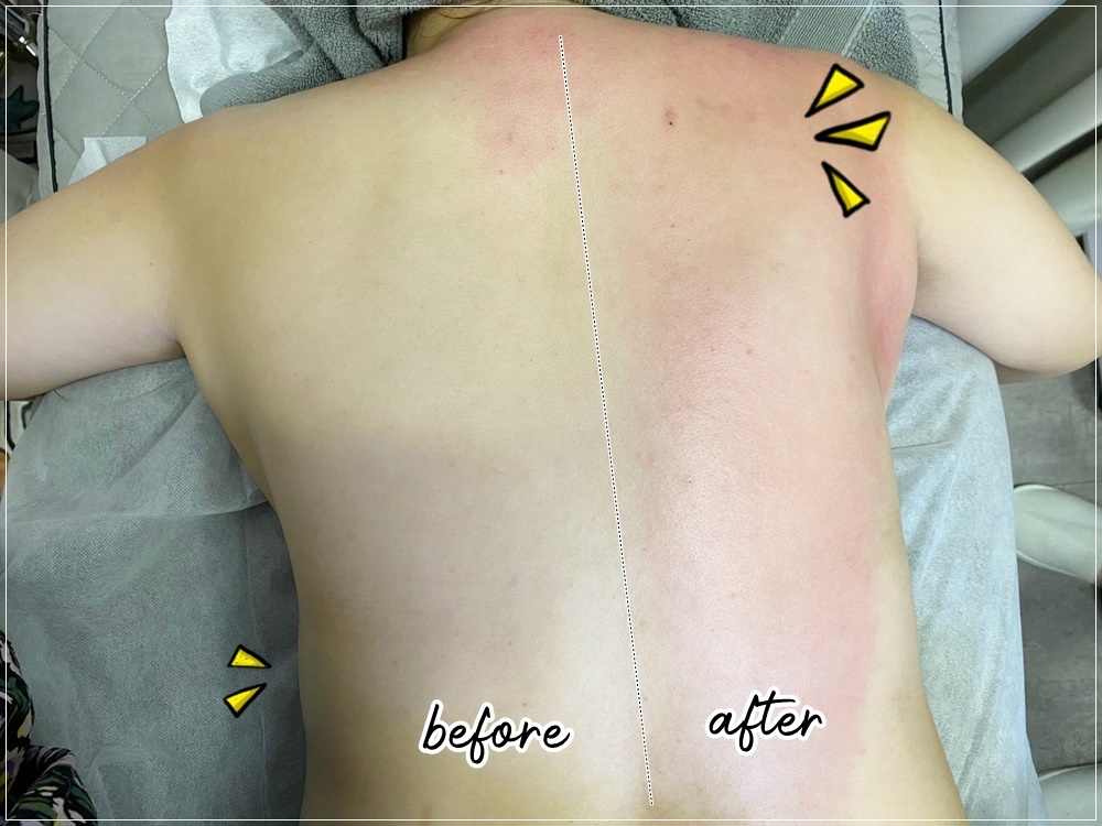 做完一邊,去除了浮腫,已經看到背部明顯較薄。