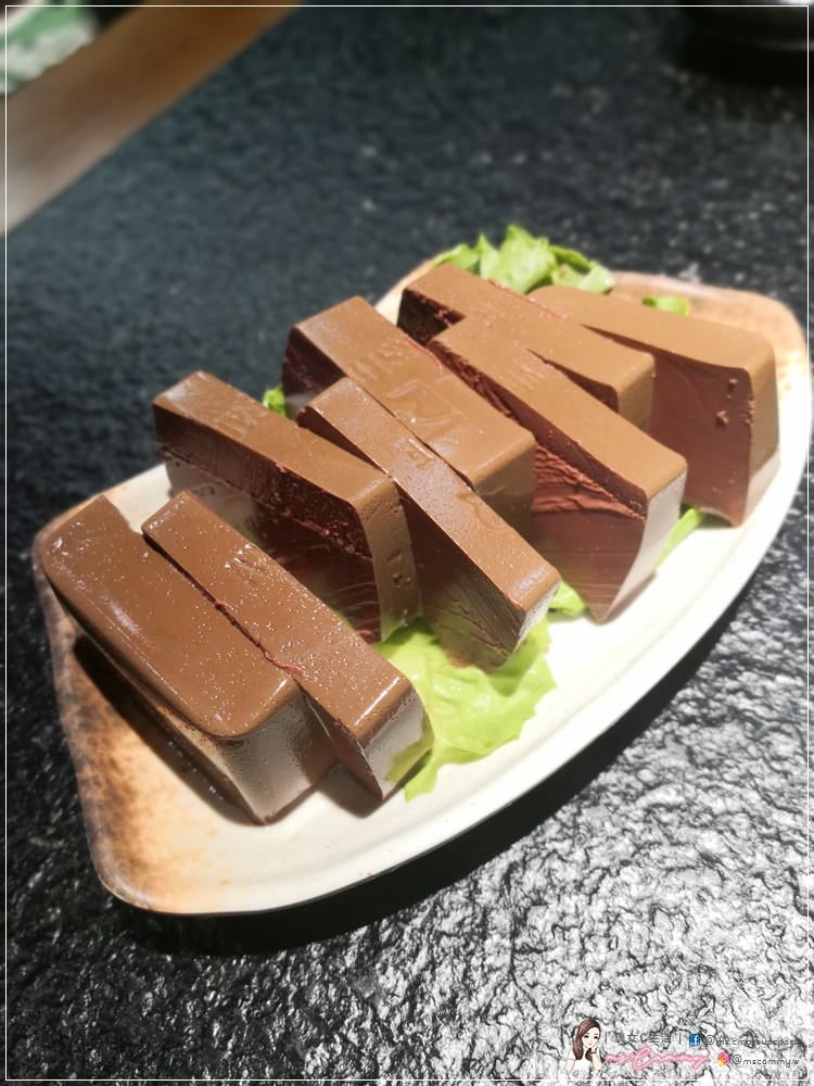 鴨血份量多,一大磚鴨血,入口軟嫩,質感Q彈,爽口彈牙。