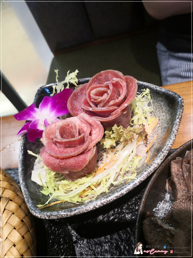 牛脷捲成玫瑰花狀,未食之前先打卡。肉質爽嫩有彈性,薄薄一片,想不到肉味濃厚。