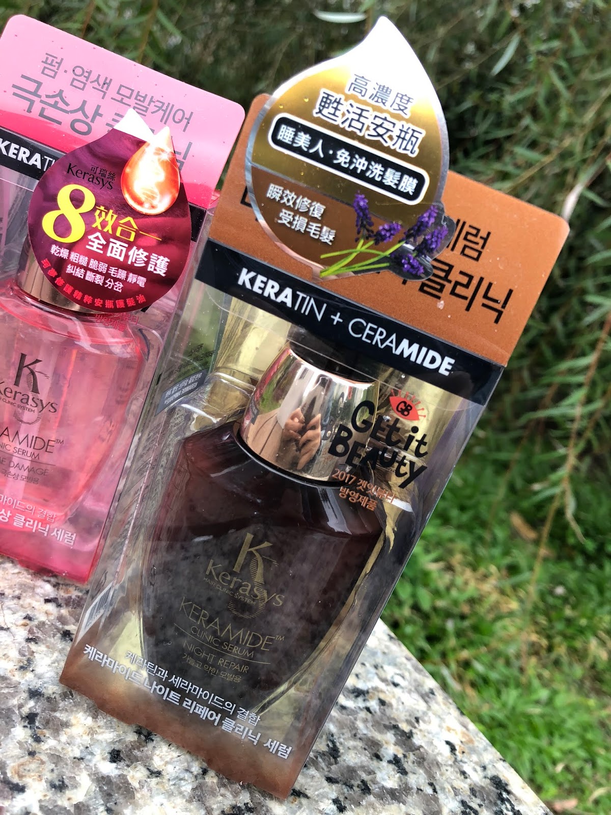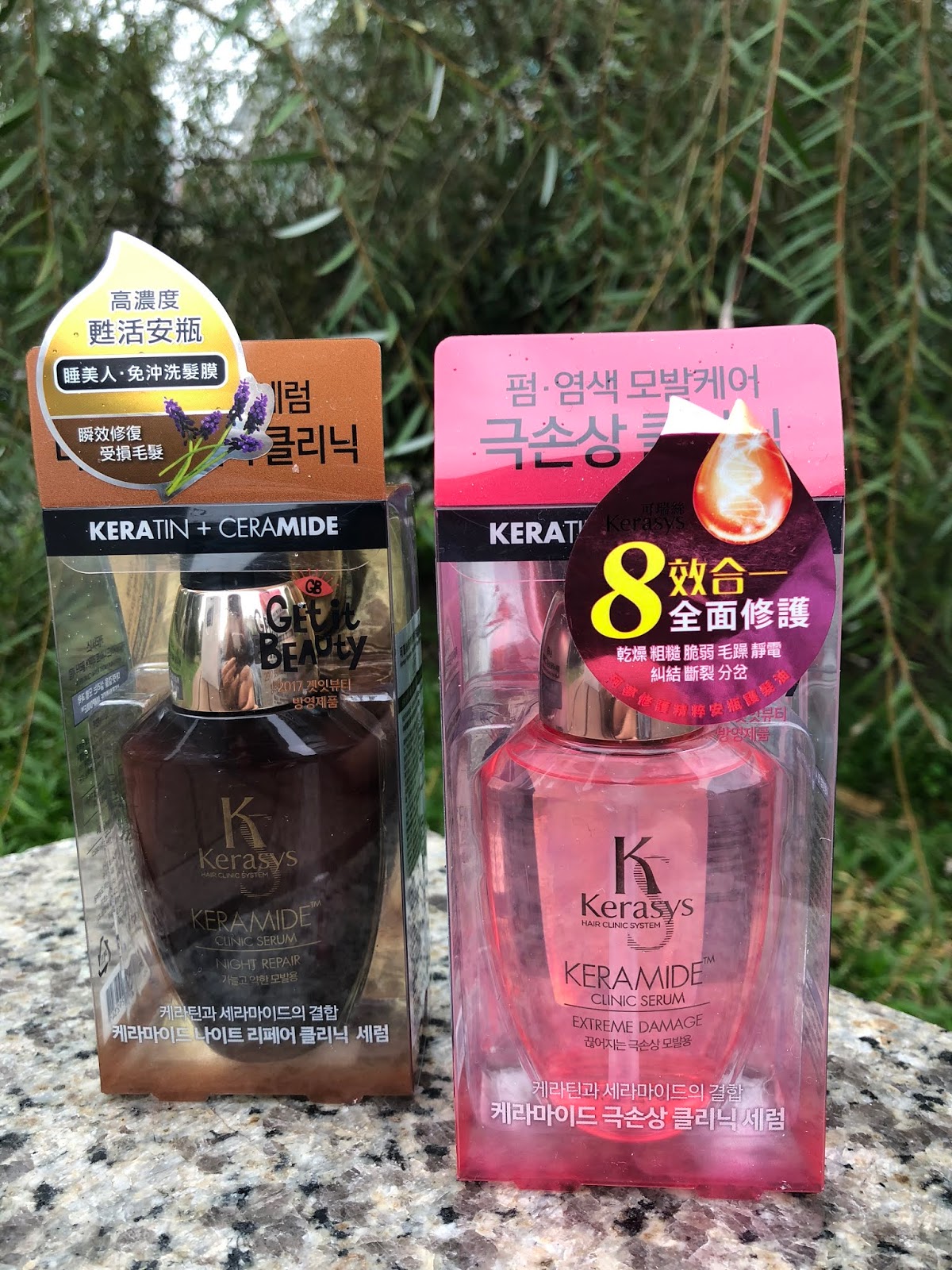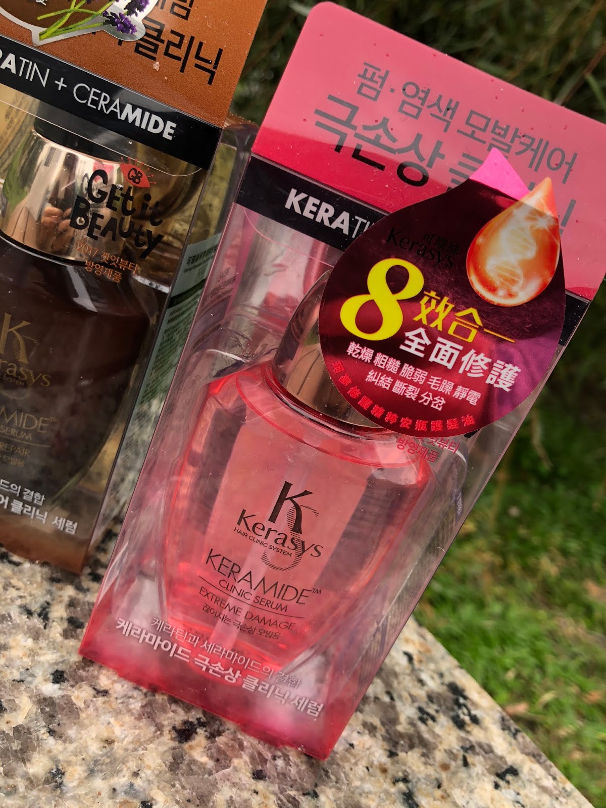 白天: 可瑞絲Kerasys修護珂夢精粹安瓶護髮油
