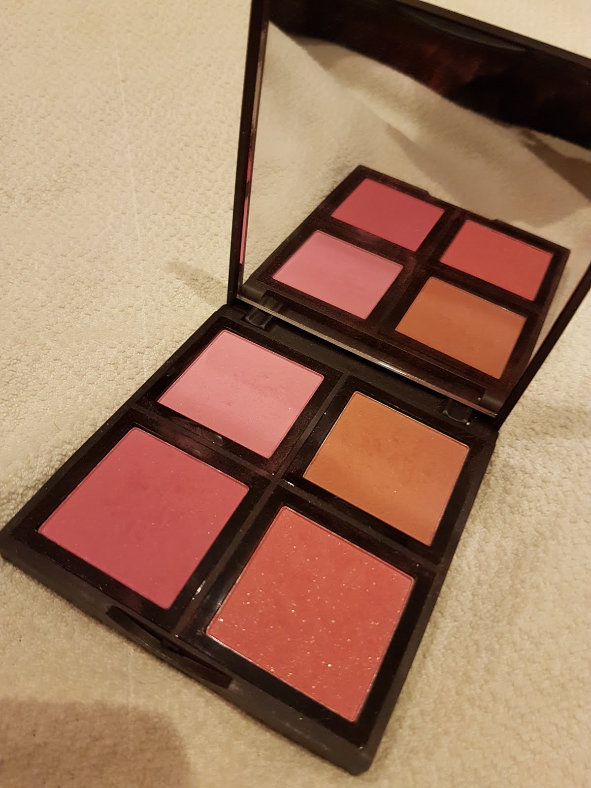 比粉狀 Orgasm 更內斂細緻一點、光澤沒那麼金,顏色本身跟 Orgasm 差不多,就是蜜桃色。