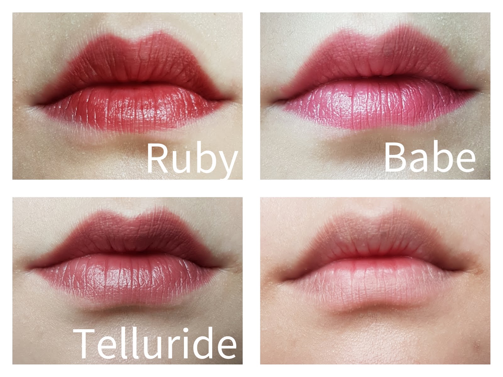 結論,這系列的質地是滋潤的觸感,發色沒那麼濃郁(每一款塗起來都比想像中輕淡了點,所以最好還是要實際去摸,單純看色卡超級不準確),稍微輕透的半霧面比起純霧面更舒適、好駕馭;單看顏色的話 Telluride 我真的很喜歡,但可能我的五官真的不適合棕土色系唇彩吧... orz