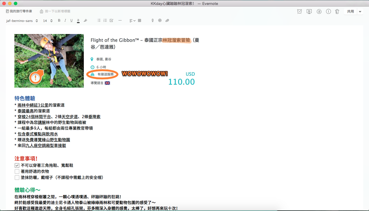 小編教的三大妙招可要好好記下來喲~下次規劃旅行的效率少說提升一百倍,完美結合Evernote與KKday,讓你輕鬆混搭旅行新體驗!!!