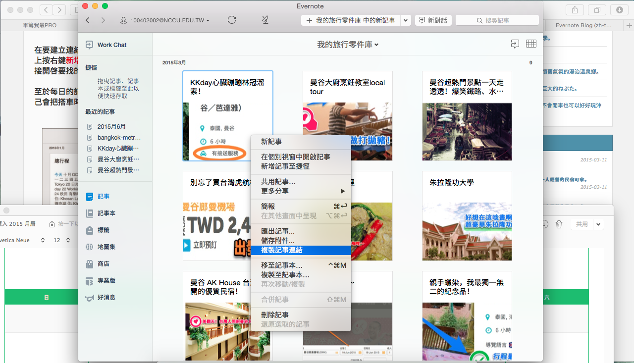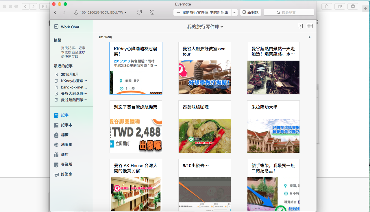 步驟五:同步Evernote後,就可以查看你所建立的混搭旅行零件庫的記事本囉!