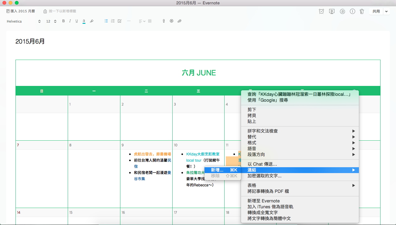 步驟三:打開〖妙招二〗利用Skitch串連的行程,填入你的月曆中