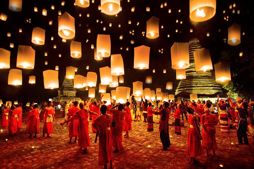 依照泰國的傳統習俗,位於泰國北部的清邁每年均會舉辦水燈節,信徒會把水燈放入河中祈求願望實現,而最精彩的部分還是萬人放天燈活動,飛翔古寺之上的天燈,讓人看過後難以忘懷。