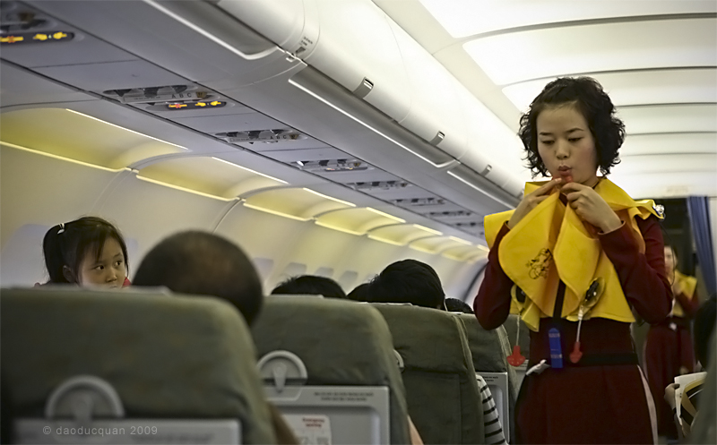 救生衣在座位下方,發生意外時才能聽從空服員指示使用,穿上後在機門邊才將救生衣充氣(不能先充氣,機艙內容易堵塞,會影響逃離時間)。