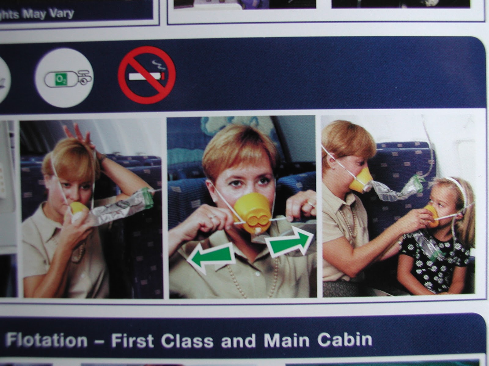 當失壓時氧氣面罩會從頭頂上掉下,往下拉啟動氧氣面罩,罩住口、鼻,並在自己戴好之後才協助孩童以及其他乘客使用氧氣面罩。