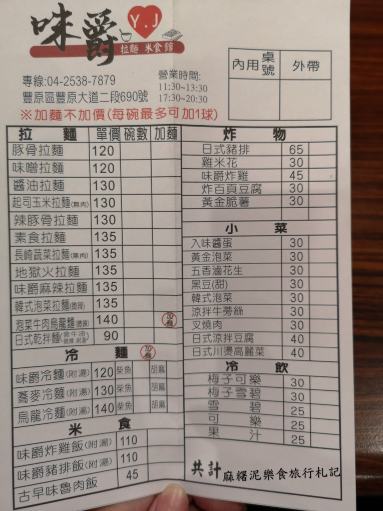 味爵拉麵地址:豐原區豐原大道二段690號
