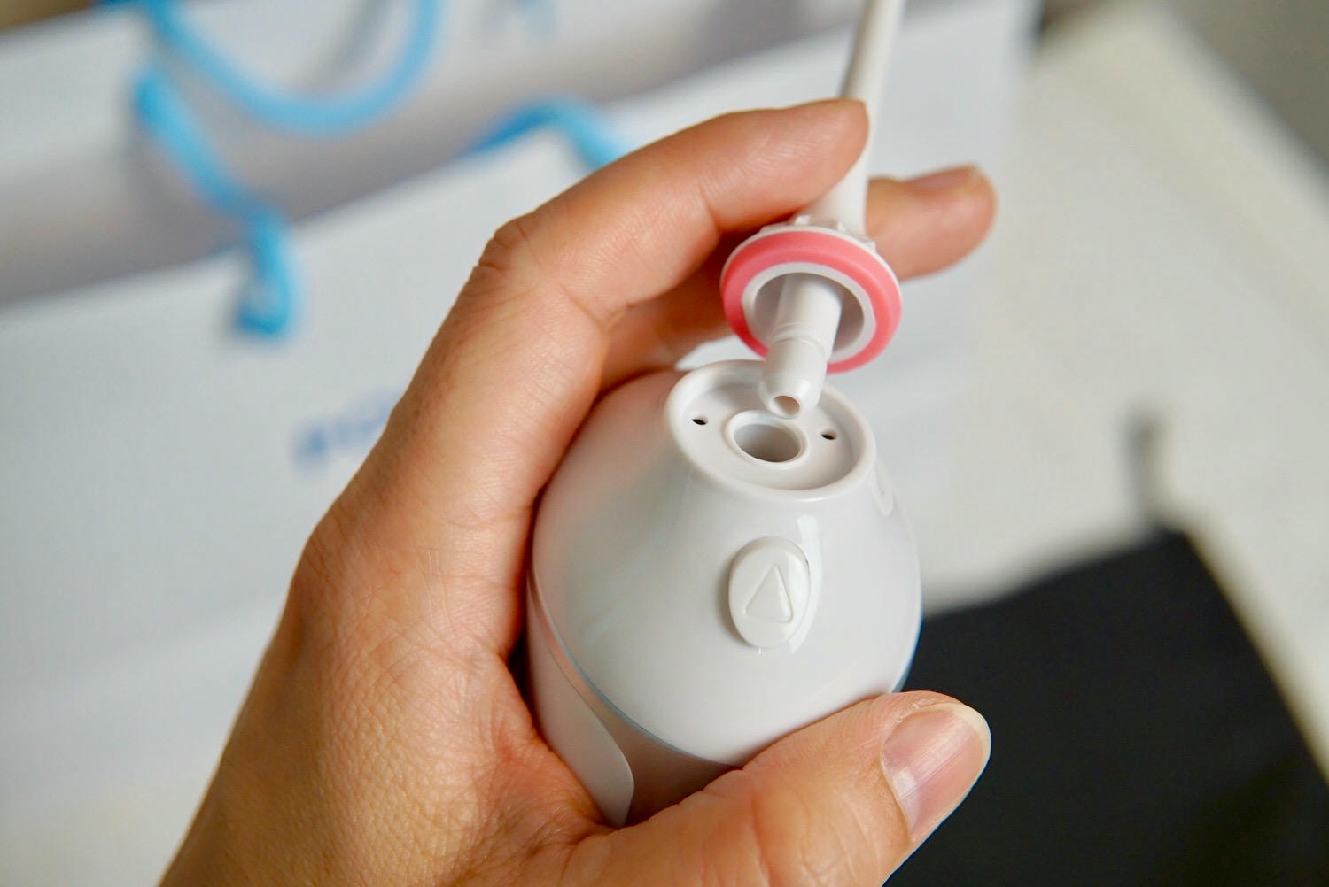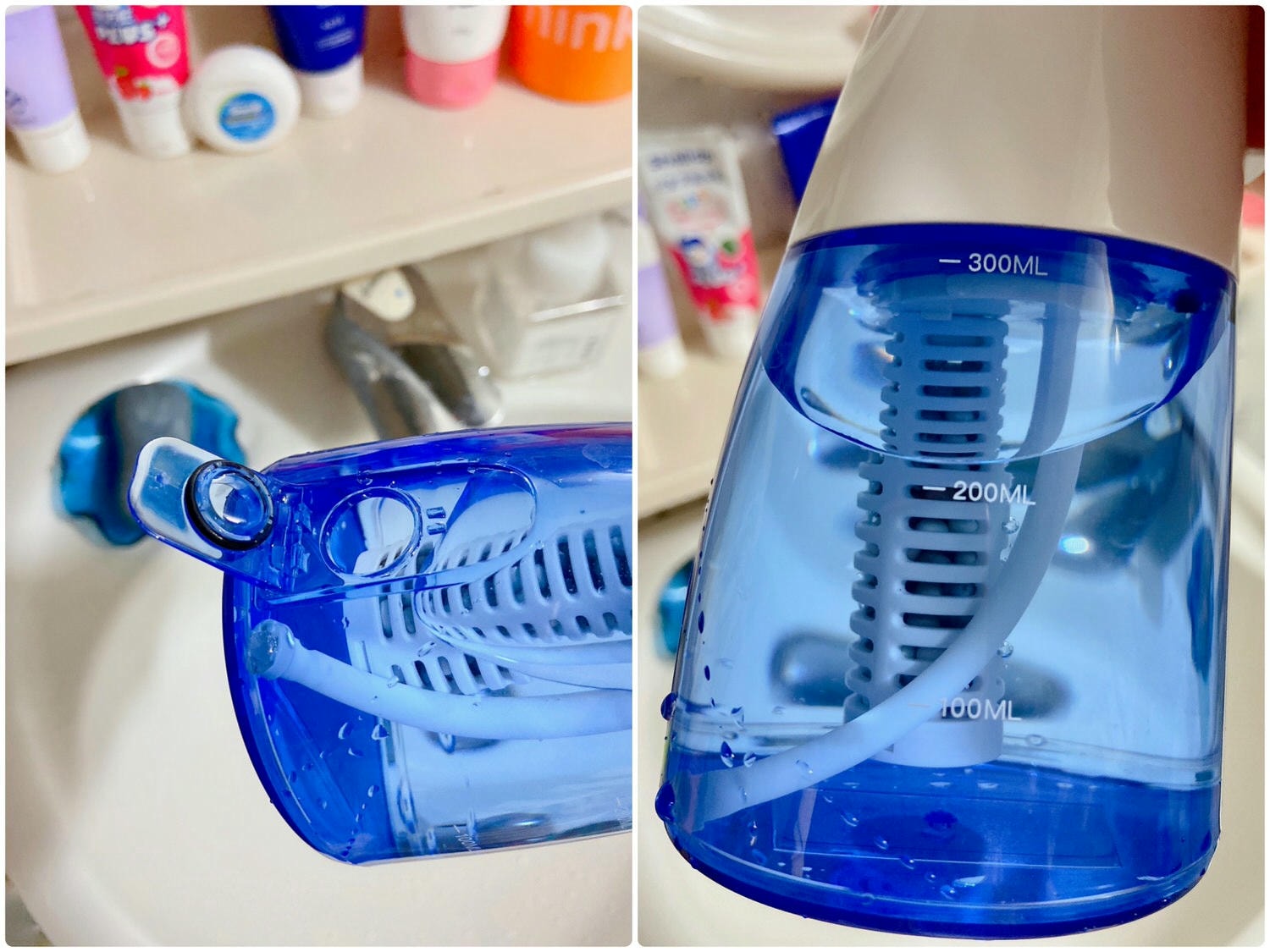 至於沖牙機要充多久?官方建議沖60秒就可以有高效潔淨力,90秒可細細清潔齒縫,120秒則是深度清潔!可以看個人需求,我通常60秒就覺得OK了XD。突然想到有次Tai用完牙線棒再用沖牙機,竟然還沖出殘渣…特別推薦家中成員沒有用牙線習慣又勸不聽的,買一台方便好用的沖牙機給他們用,至少強過完全沒有用牙線清潔喔!