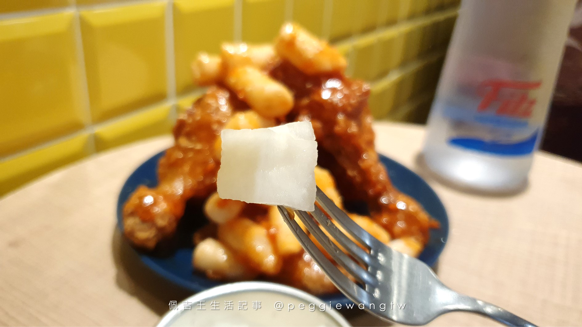 外皮薄脆內心Q軟,有點像氣炸鍋炸後口感,通常年糕變涼就會變硬,沒想到NENE CHICKEN的不會耶~而且,還很涮嘴~好吃好吃~(嚼嚼~)