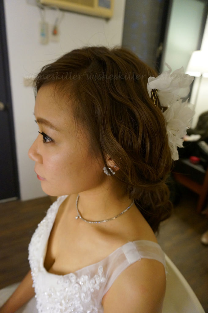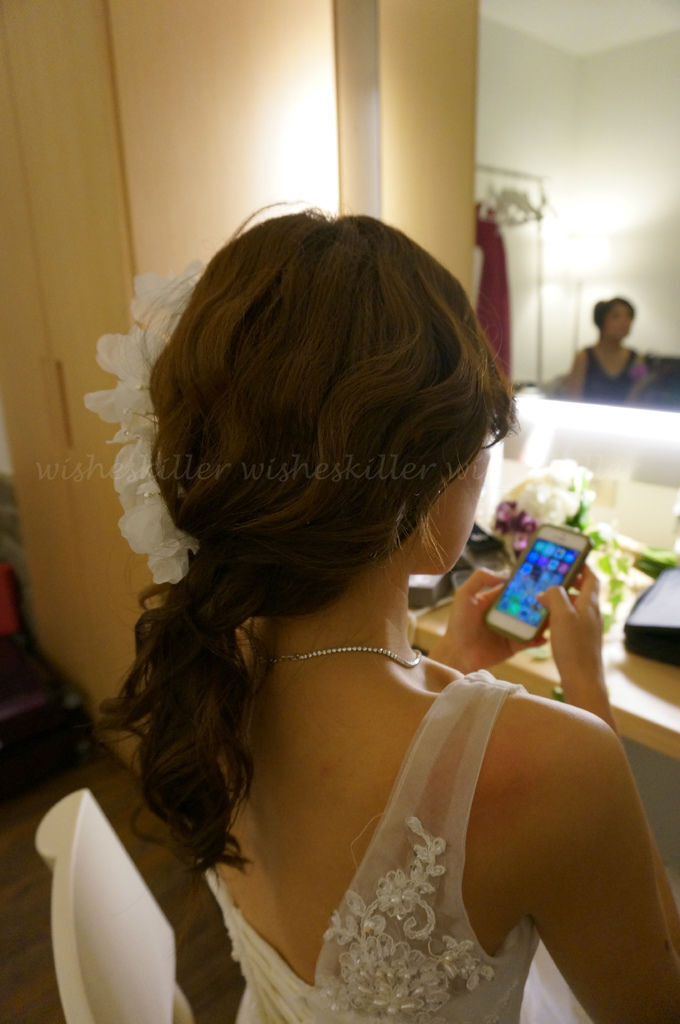 還有, 新娘的髮質太強大了)))))) 早上八點捲好的頭髮到傍晚五點依舊捲得像麻花一樣漂亮