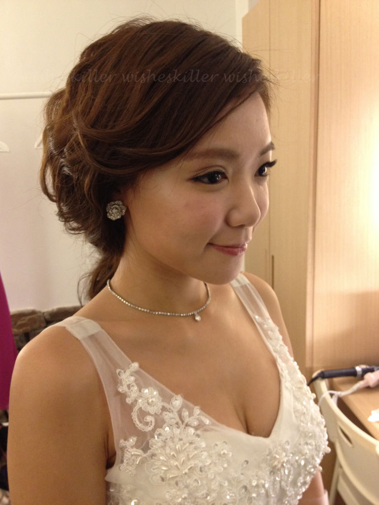 外層的頭髮我利用三管重新造型, 鬆鬆的往後收成類低馬尾, 每個角度都有浪漫卷度(心)