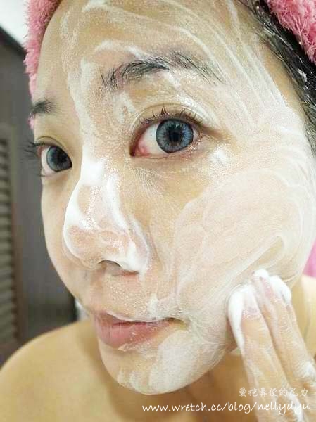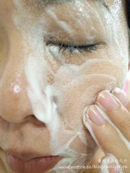 抹在肌膚上不用太用力搓洗,慢慢的在臉上打轉