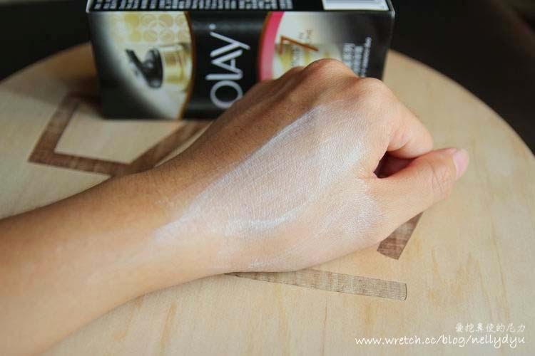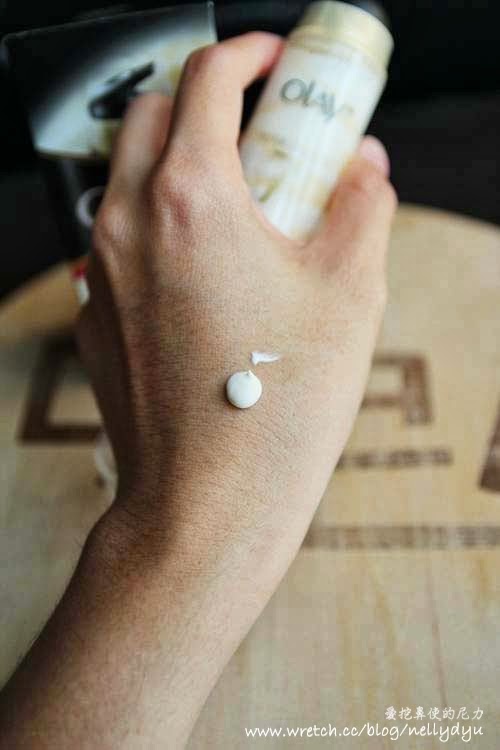 藉由OLAY「雙旋多效精華霜」的良好延展性