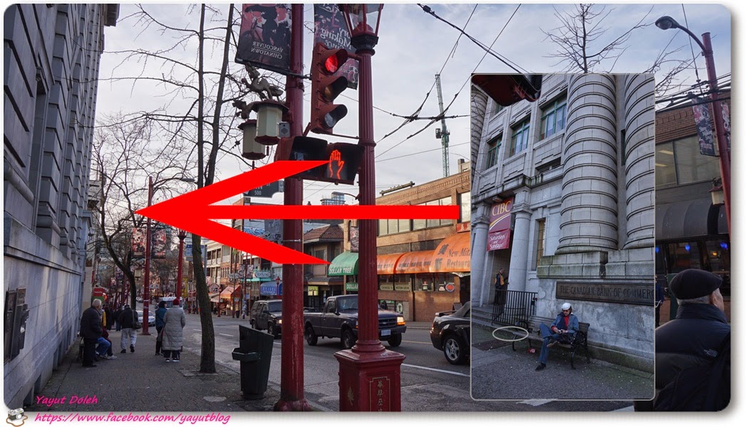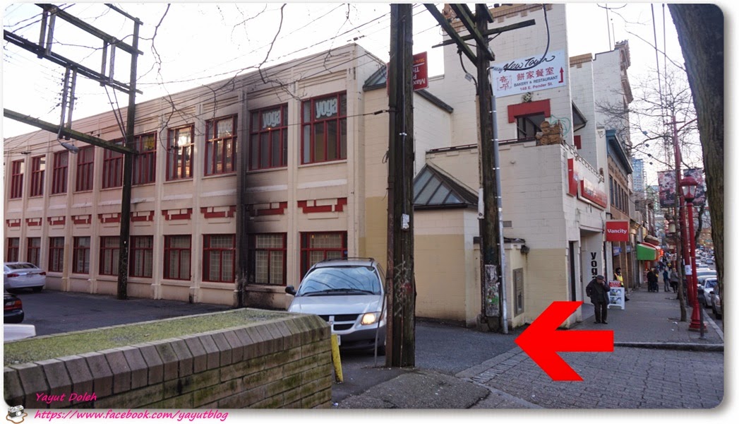 Chinatown Station走往上的出口上手扶梯後右,沿樓梯下來順著路一直直走約5-7min,過銅像後看到白色牆的街口左轉(還沒到main st.),進巷子後不到1分鐘,就在右手邊.