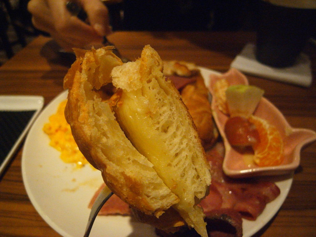 最喜歡的是炒蛋跟中間的可頌麵包,中間有起司~