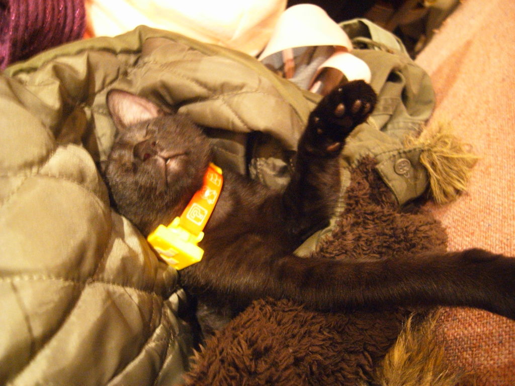 所以他黏在我的外套上.....而且睡死了