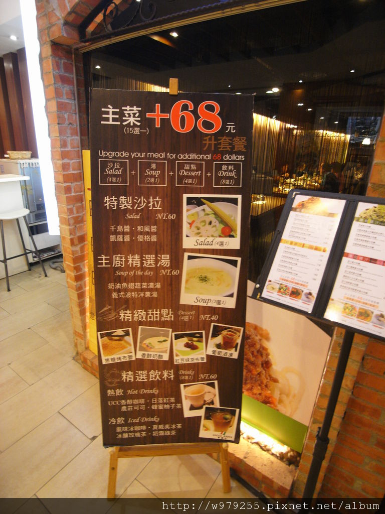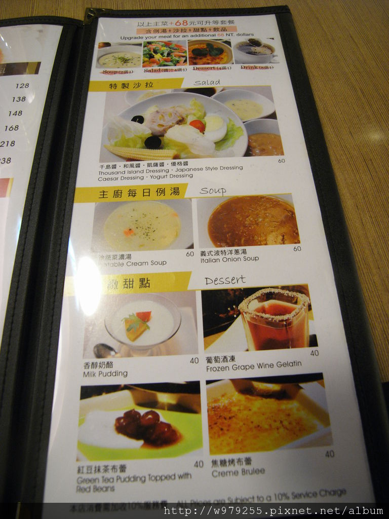 而只要加68元就有沙拉、湯、甜點飲料的組合