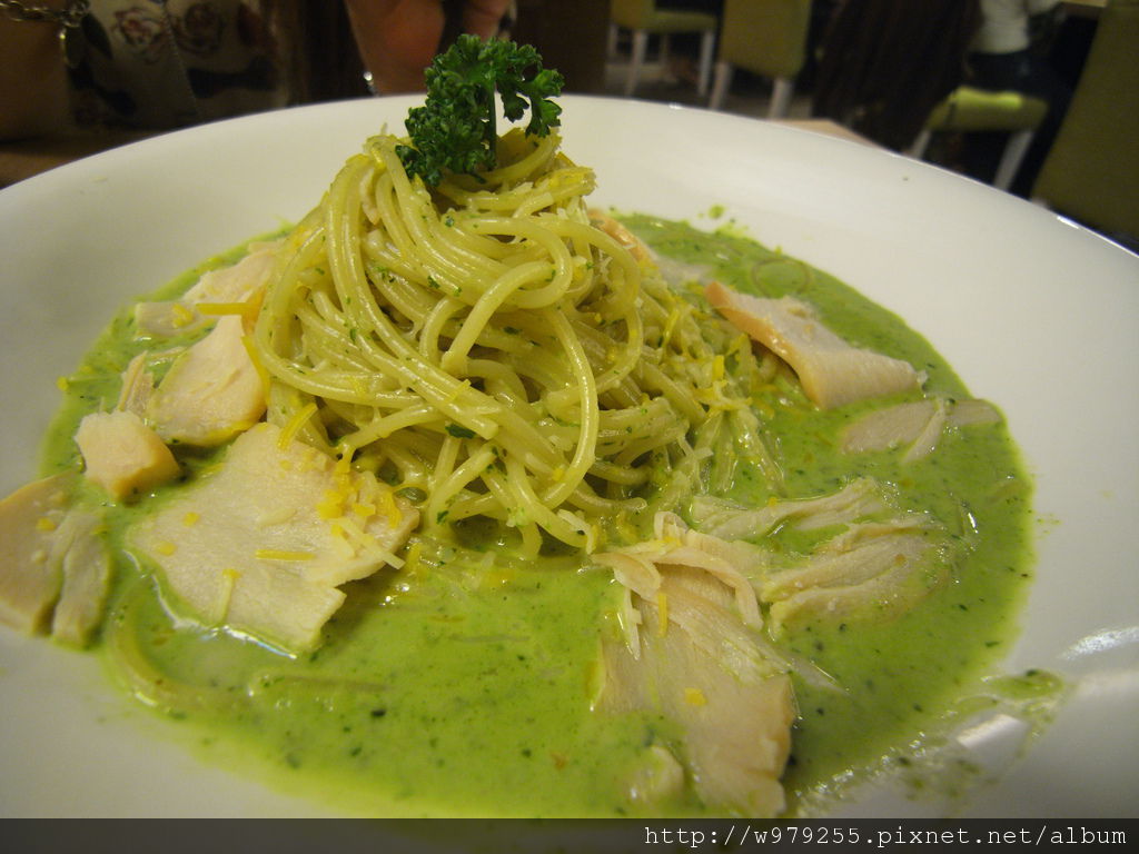 不太像一般的青醬義大利麵(我比較愛顏色很深綠的那種