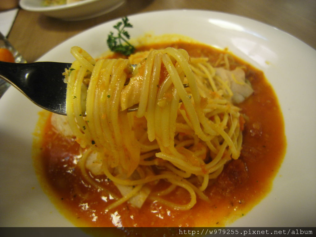 這次我們點了茄汁燻雞義大利麵/青醬義大利麵為主餐