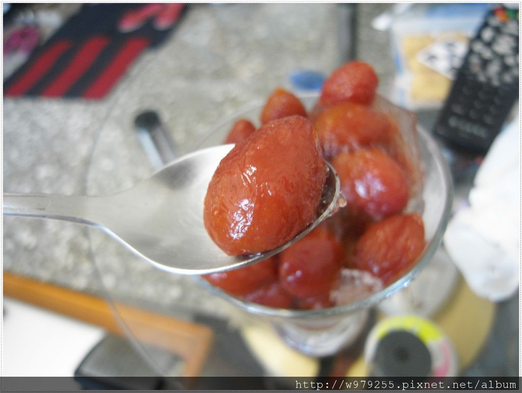 就是解凍後約10-20分鐘左右,每一個番茄都還有冰塊時