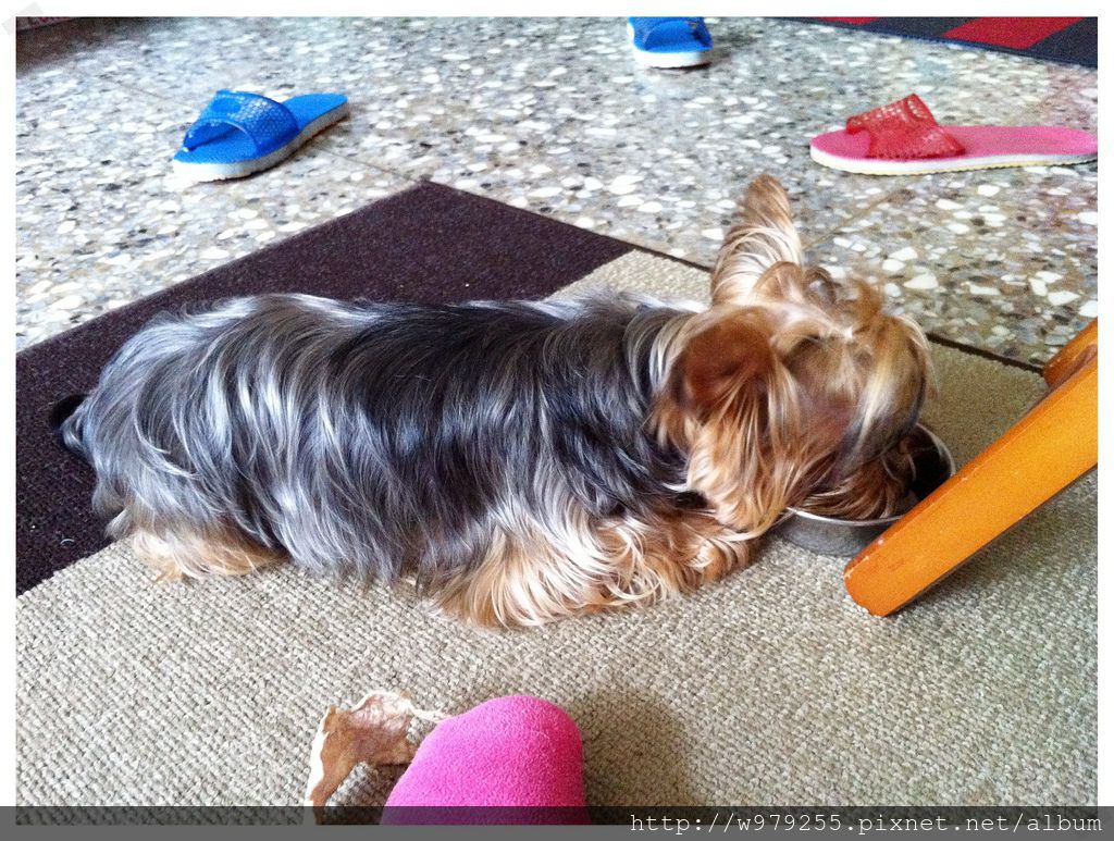 吃東西很懶,吃飼料用趴得吃...這點到底像誰呀