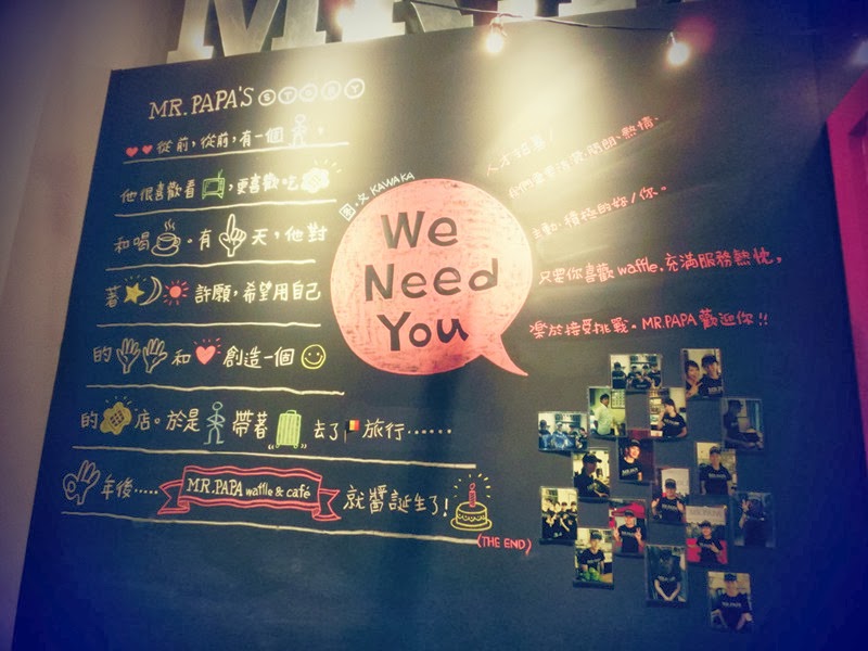 大大的黑板上,寫著MR.PAPA老闆追逐比利時鬆餅的熱情,
