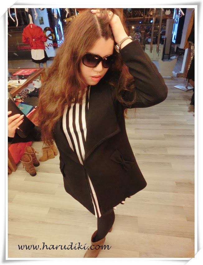 穿搭部分最近也很愛穿大衣,搭配簡單的直條紋修身小洋裝