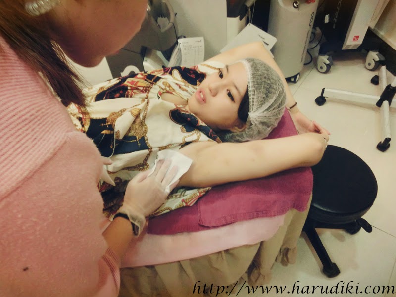 在做雷射之前,美容師也會簡單的用酒精幫我們做個最後的清潔