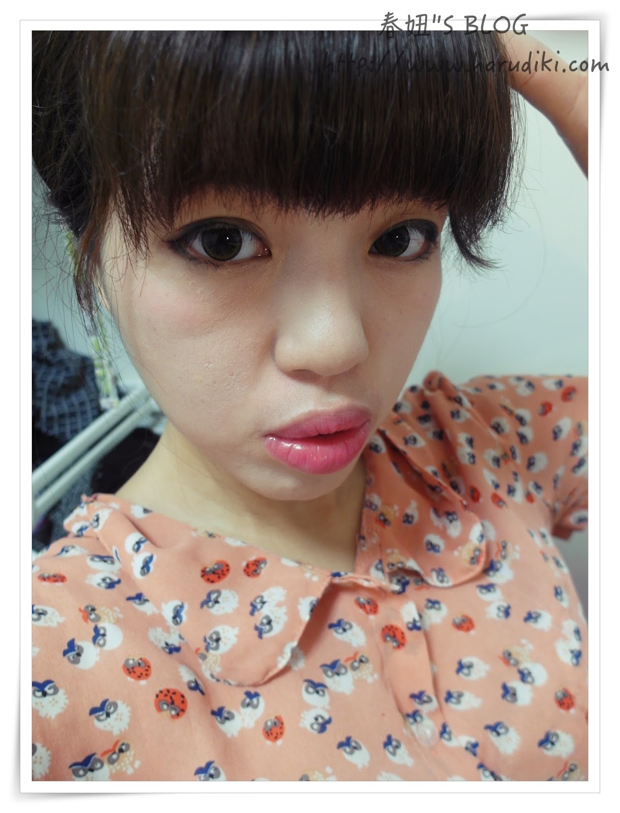 非常的懶,但大眼的效果非常好,簡單就是居家妝容,在家約會也很討喜。
