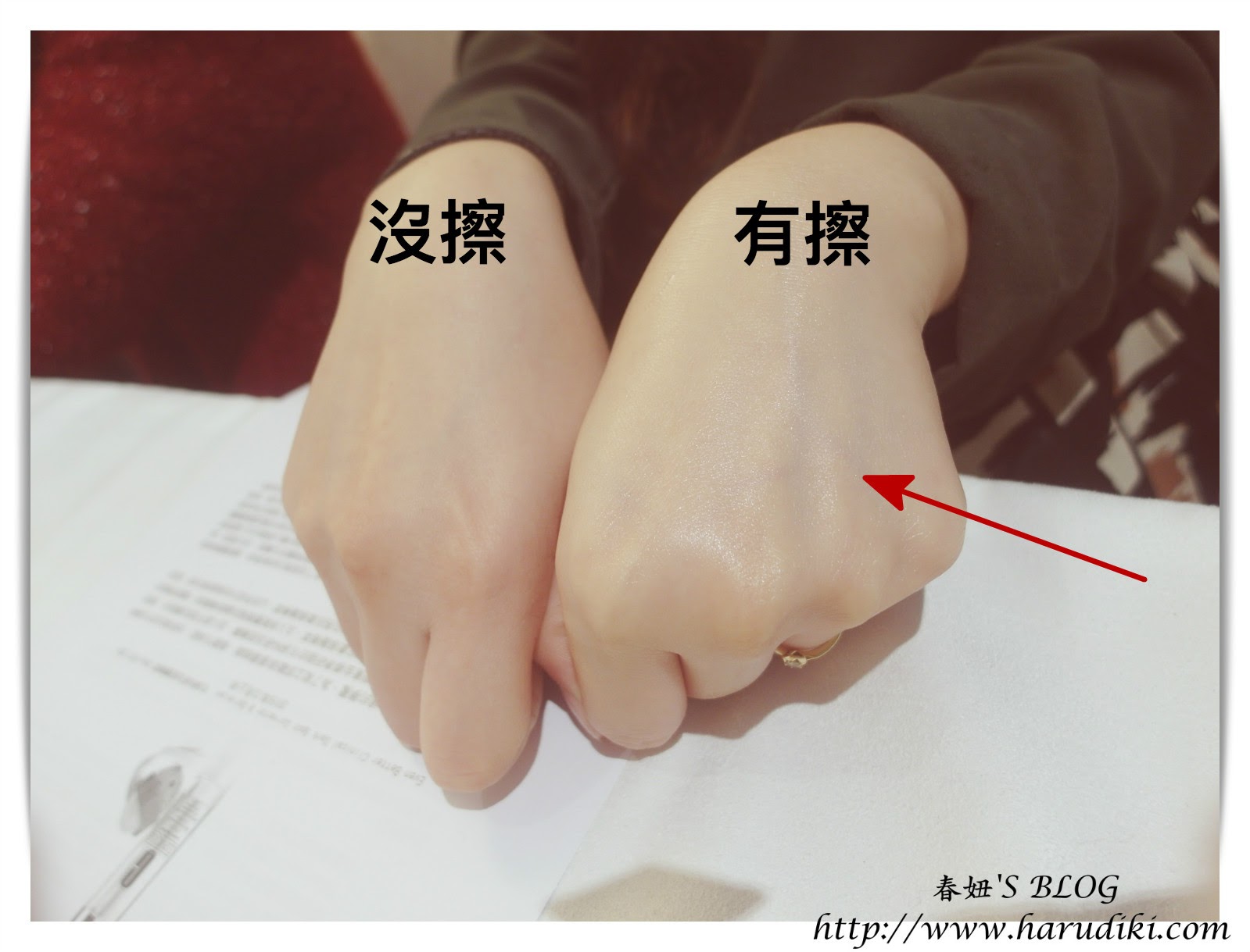 在活動現場做手部測試時,沒有多上什麼保養品,只是單使用潔膚水清潔後,