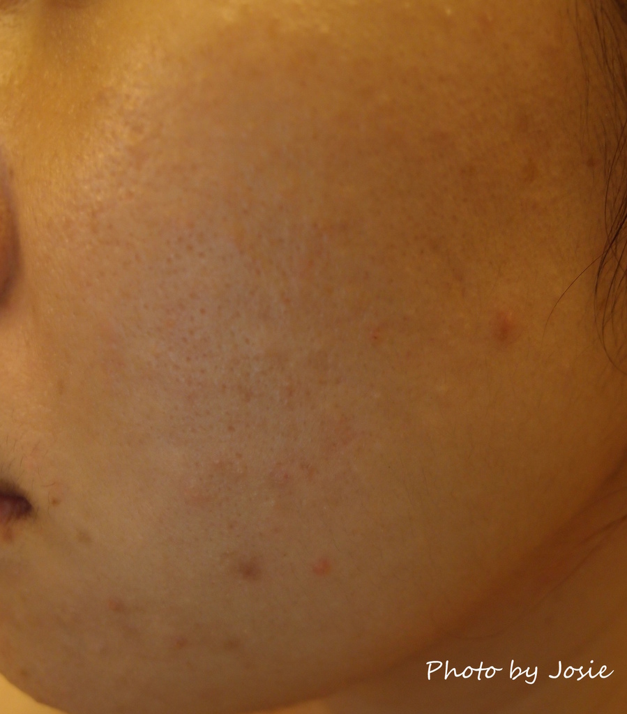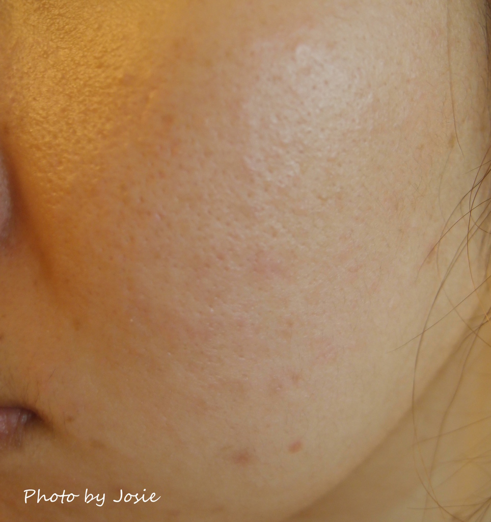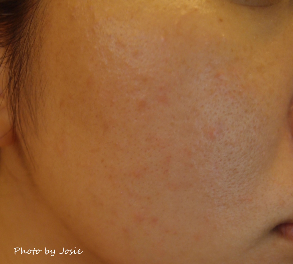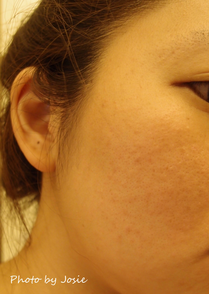當然不同時間拍,光線有些落差,但明顯的看出皮膚痘印淡掉許多