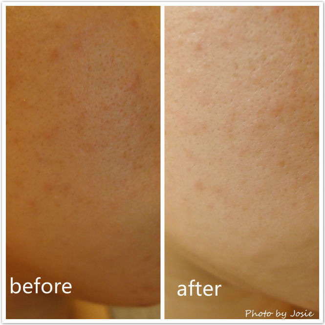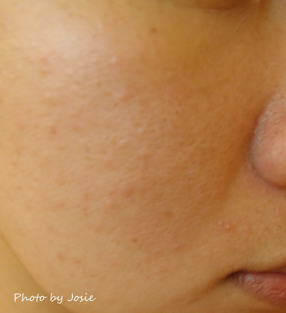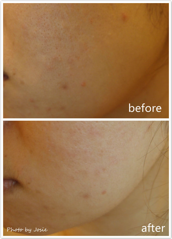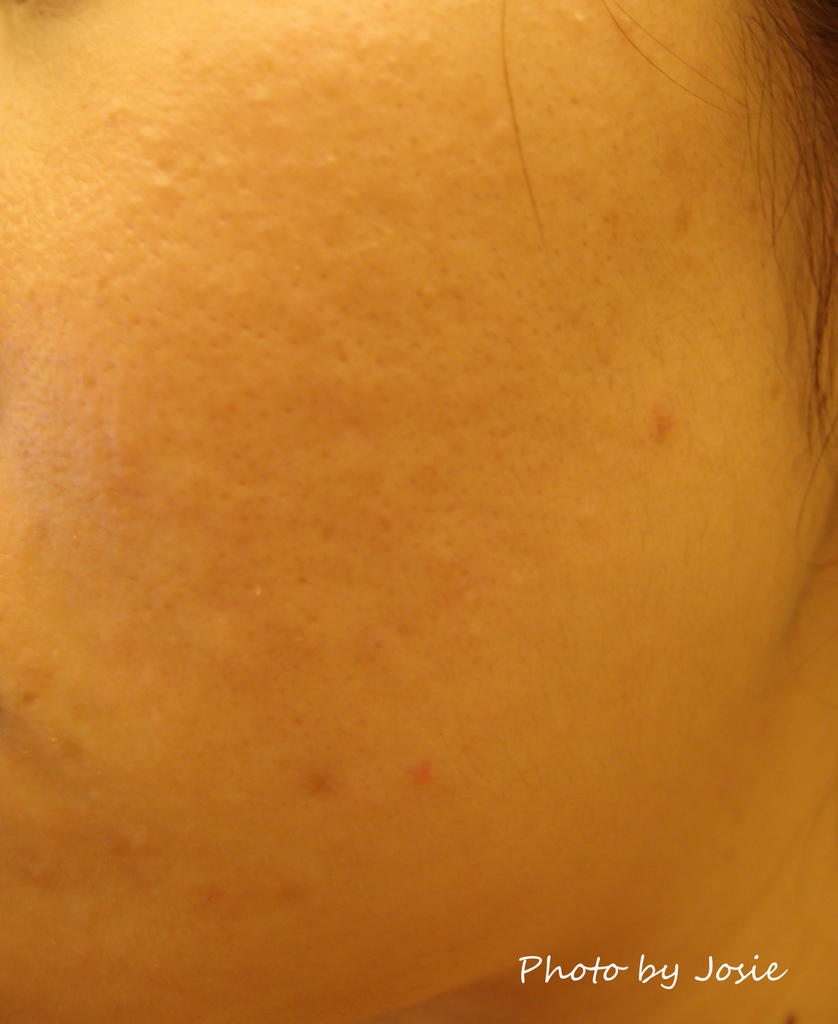 當然不同時間拍,光線有些落差,但明顯的看出皮膚痘印淡掉許多