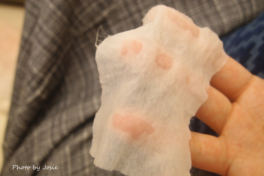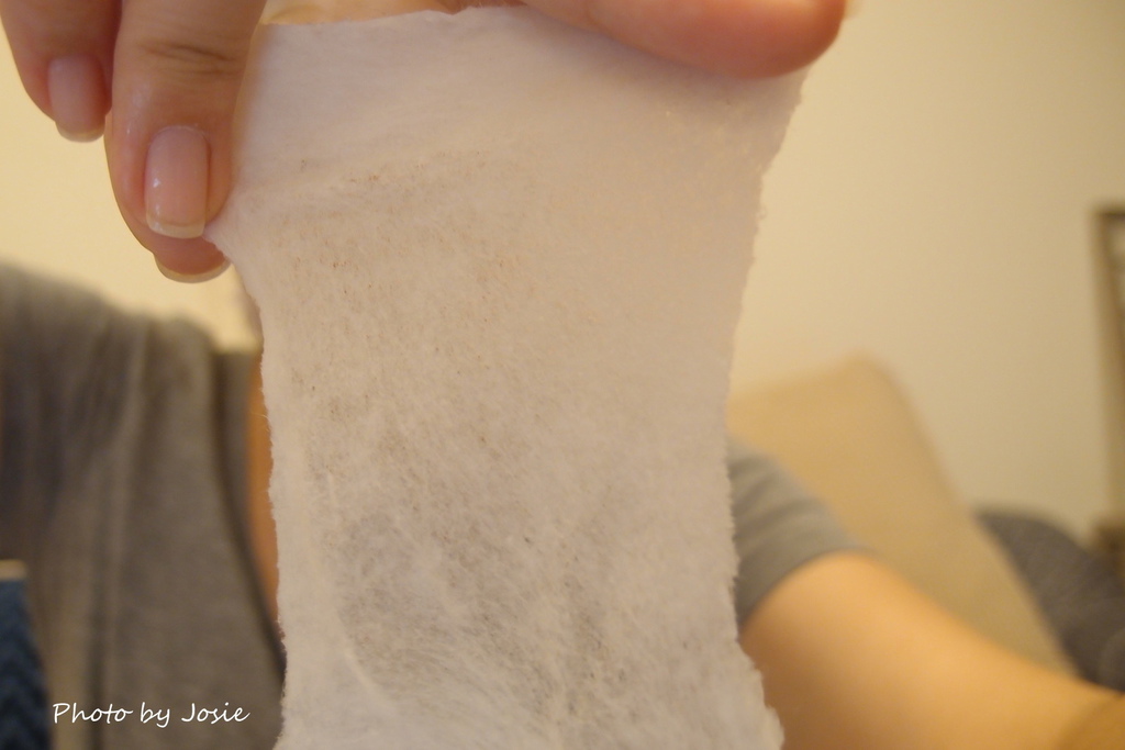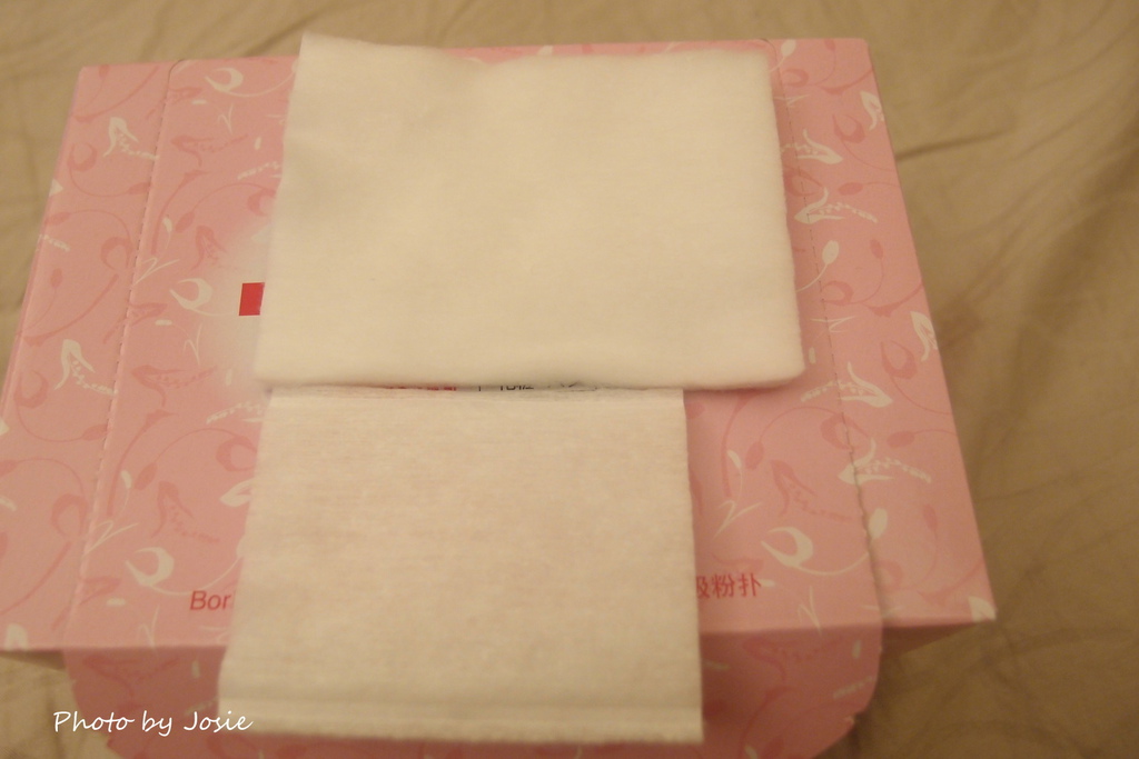 它的化妝棉跟一般的化妝棉不同,織法比較細膩,延展力很強,可以拿來濕敷,撕成好幾片拉開來都不容易破喔.