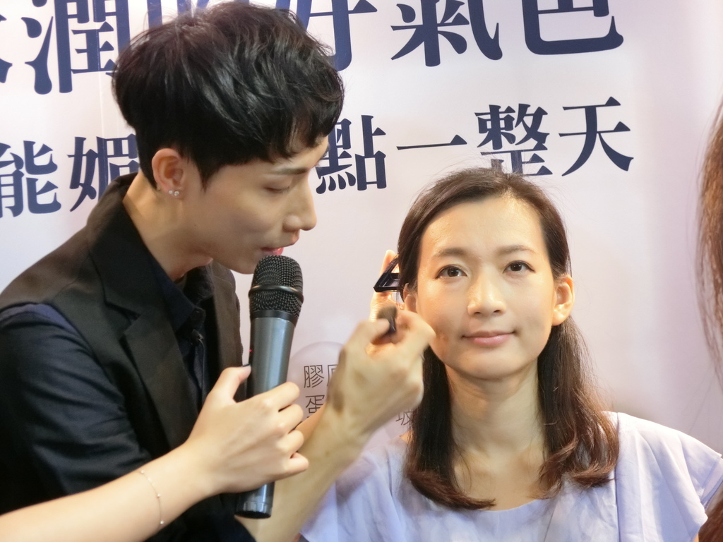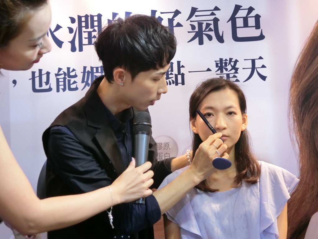 當天也有許多的網友一起參與,清秀的網友擔任當天示範model,可以讓人瑋老師化妝真的好幸福.