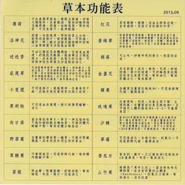 最後附上草本的功能表給大家參考唷,大家可以比對一下成份,看每款茶的草本功能唷...也能看看自已適合那款茶