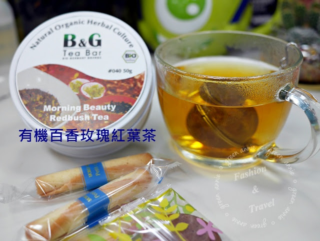 正覺得奇怪時,才認真看了成份及名稱~~人家是「百香玫瑰紅葉茶」(((真糗