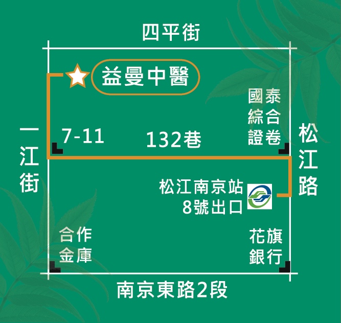門診時間松江南京捷運站8號出口左轉132巷,見一江街7-11右轉(步行2分鐘)