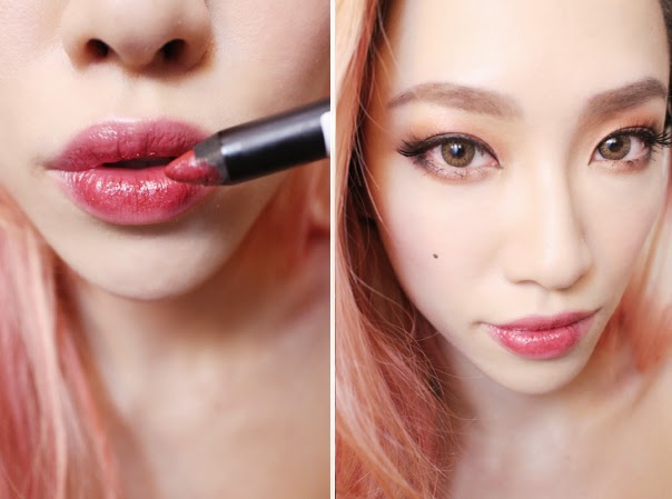 利用咬唇妝的畫法,畫在嘴唇中央 (咬唇妝 延伸閱讀)