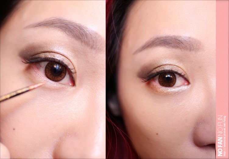 在這邊我把超激光防水眼線液的玫瑰金當作眼影來使用