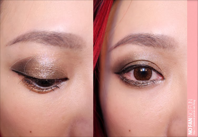 延續上ㄧ個妝容,只需要用E黑色眼影,加深上眼影眼窩的部份,還有直接覆蓋下眼影