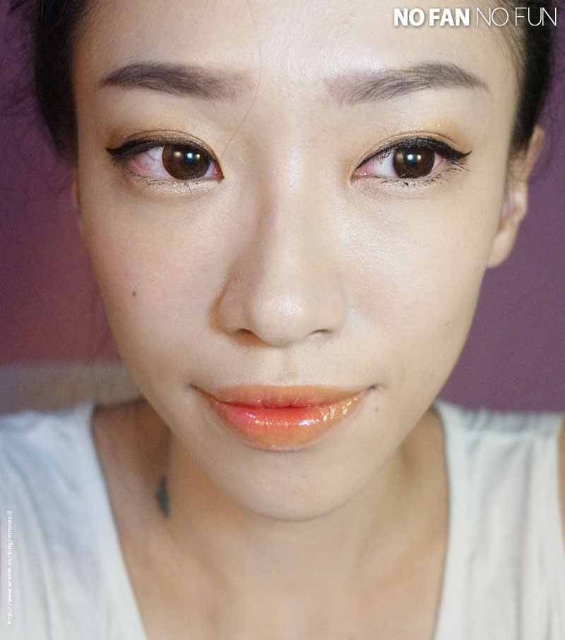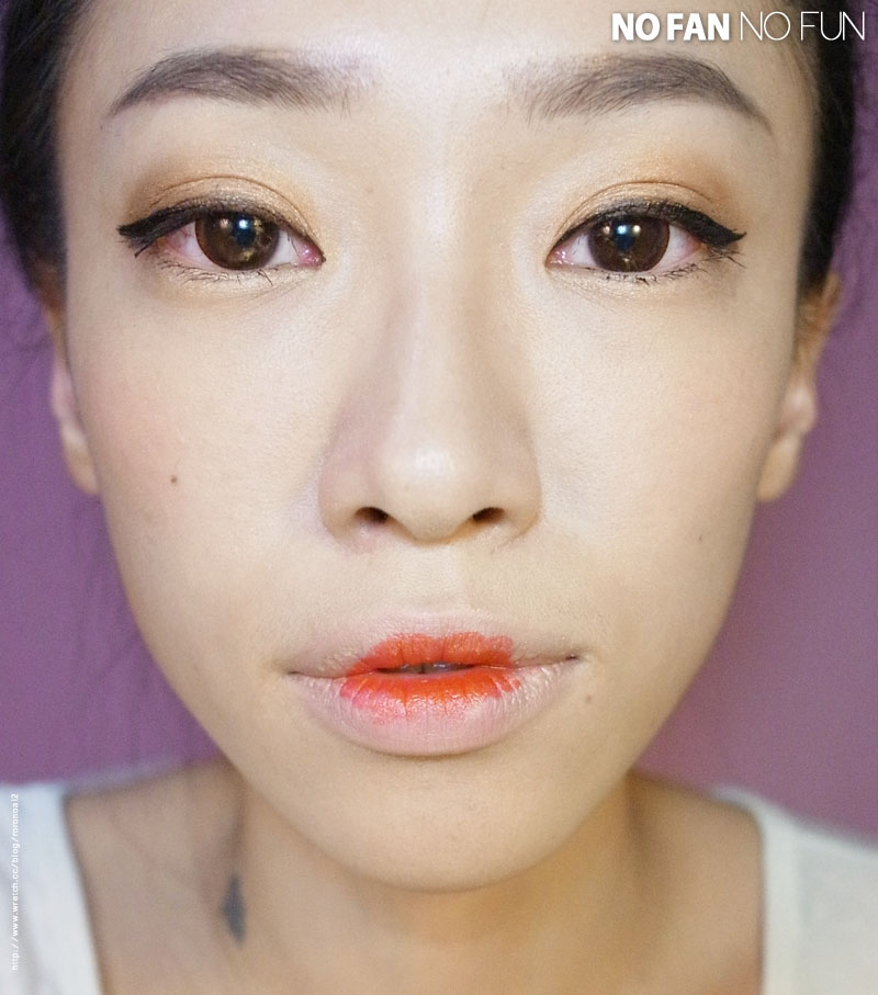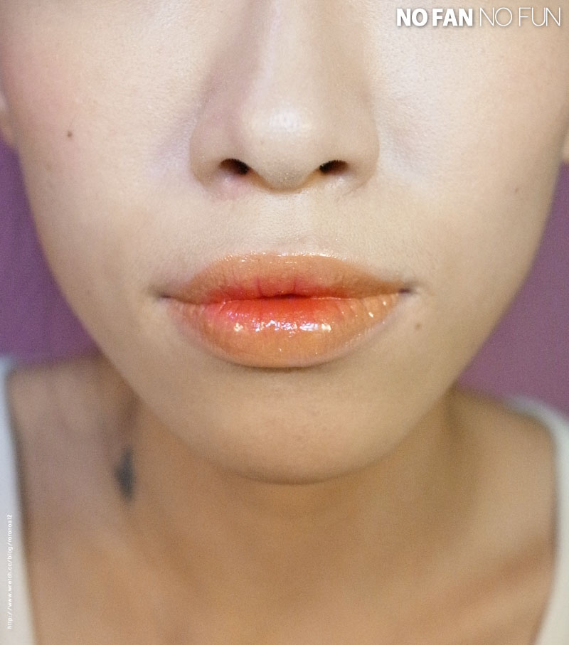 我用透明的唇蜜,一樣均勻上在整個唇部,兩色間的邊圓交界處是不是就柔和了呢~!