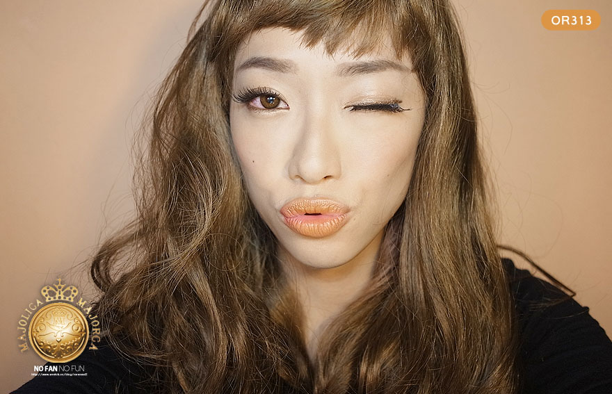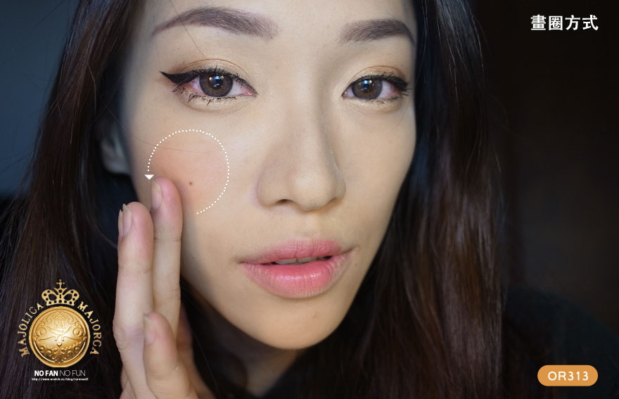 先來使用 OR313 甜橙蜜 , 可以用畫圓的方式畫在臉上唷,用量非常的省!只需要一兩滴左右